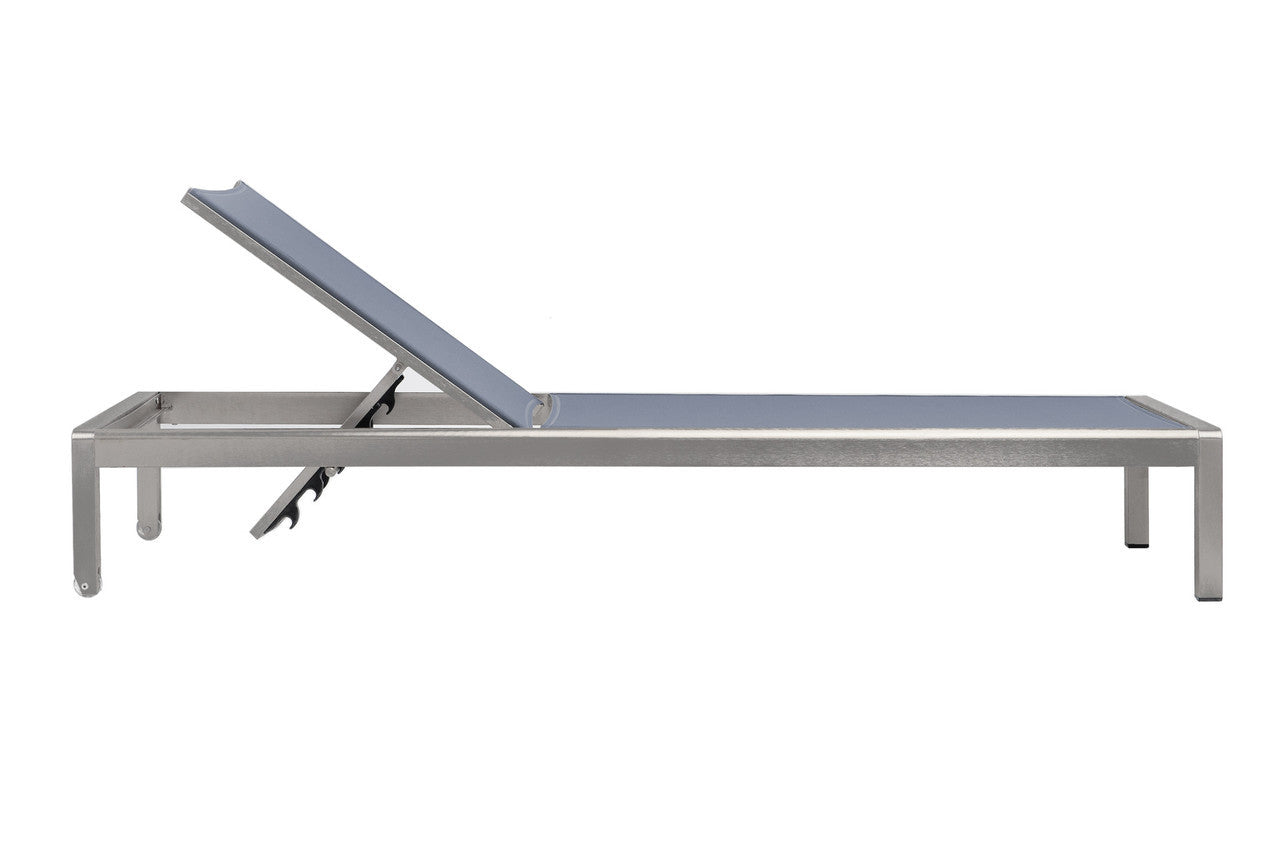 Ready to while away the dog days of summer? Look no further than our sleek, minimalist M200 chaise lounge chair. Its sleek blue-on-aluminum palette fits perfectly into any modernist’s dream patio, while easy-clean mesh backing keeps you cool for hours.