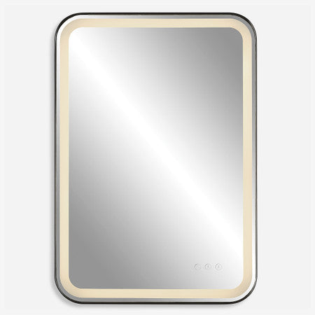 Versatile In Design, This Vanity Mirror Has Integrated LED Lighting That Illuminates Through The Frosted Strip In The Polished Edged Mirror. The Satin Black Metal Frame Is Off Set From The Wall To Allow Ambient Lighting From The Back. Easy To Use Touch Buttons Are Featured On The Bottom Right Of The Mirror With An On-off Function, Touch And Hold Kelvin Control From 2700k To 4000k, And Touch And Hold Brightness Control. LED Lights Rated At 40,000 Hours. Ships With Plug, But Can Be Hardwired Professionally.Touch Screen Icons Continue To Illuminate When Powered Off For Easy Navigation In Dark Settings.