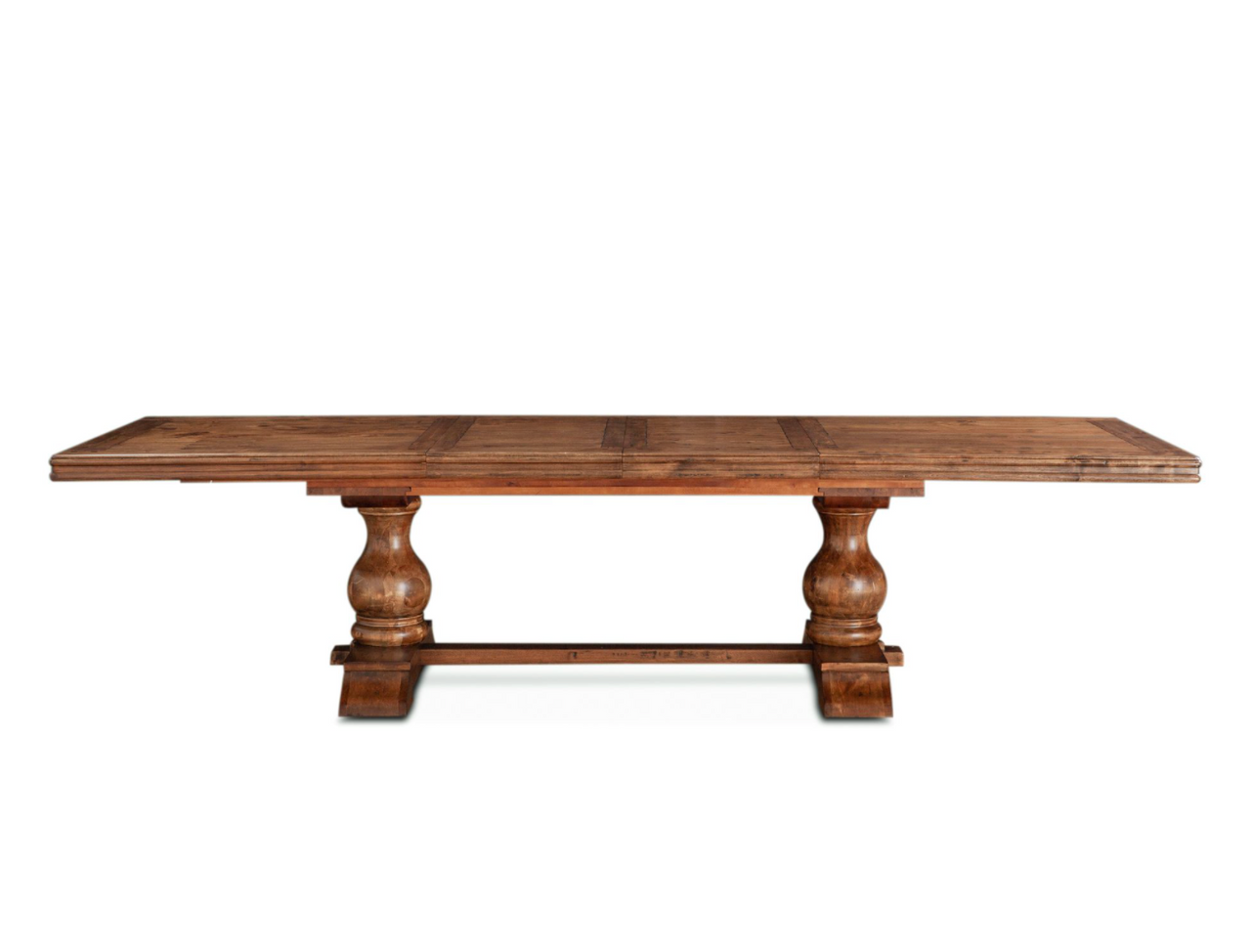 - Extension table with easy to use mechanism, single leaf allowing table to extend from 84" to 128"