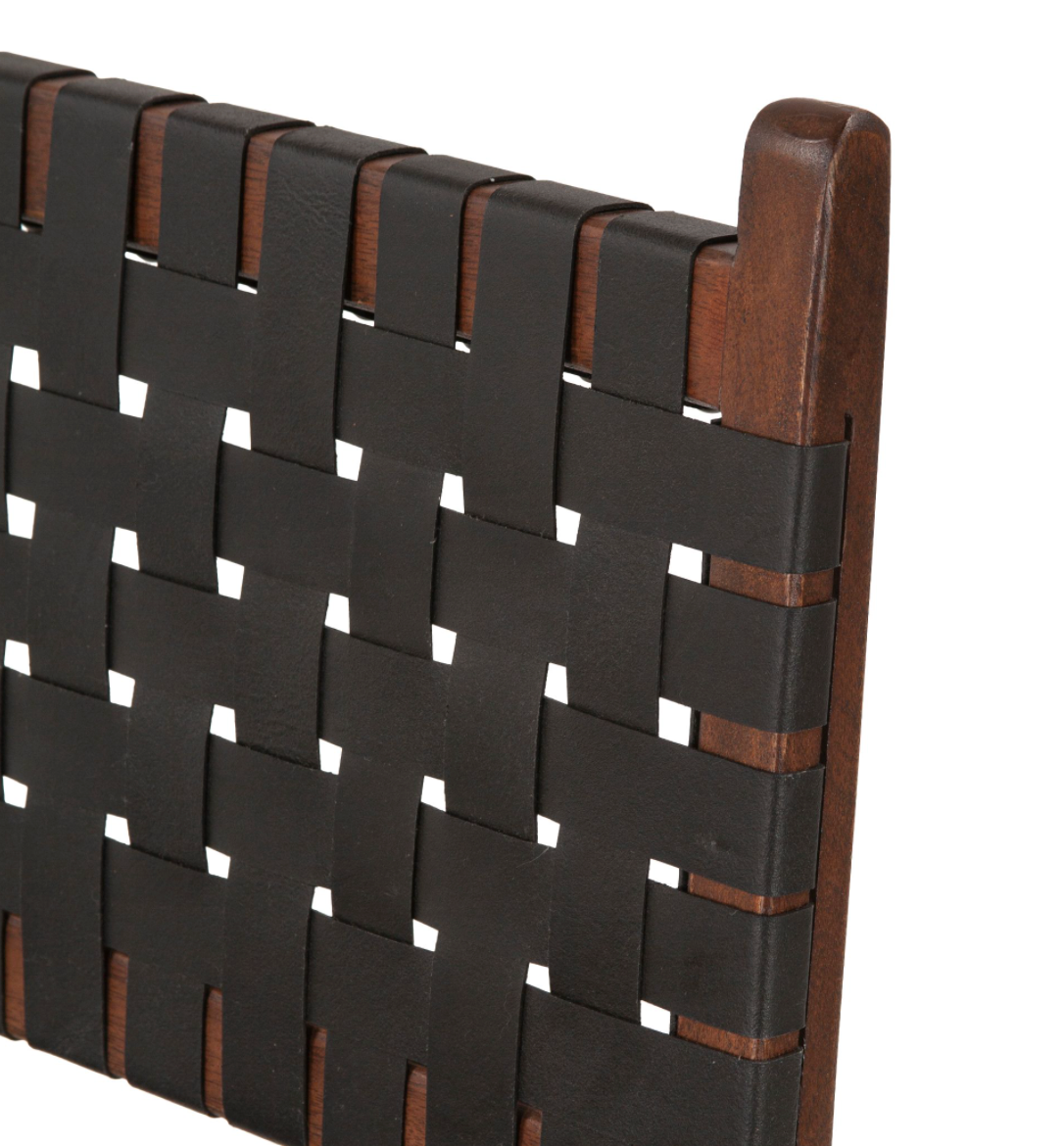 - Solid mango wood construction with black leather